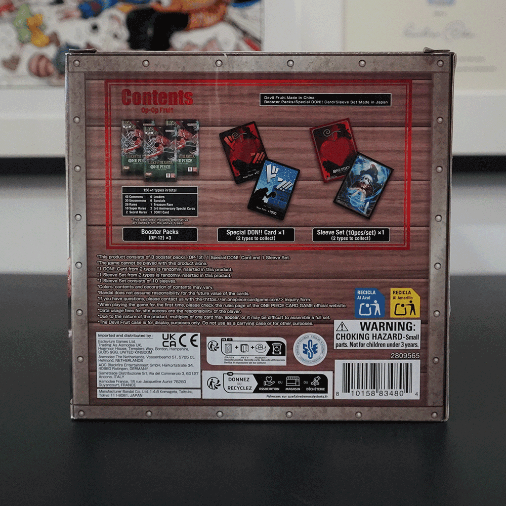 Become Trafalgar Law with the Devil Fruits Collection Vol.3 (DF-03) display set! This premium release includes a detailed model of Law’s Ope Ope no Mi, four OP-12 Legacy of the Master booster packs, and a special DON!! card with matching sleeves — available in one of two exclusive designs. A perfect collector’s piece for One Piece fans, beautifully packaged and factory sealed.